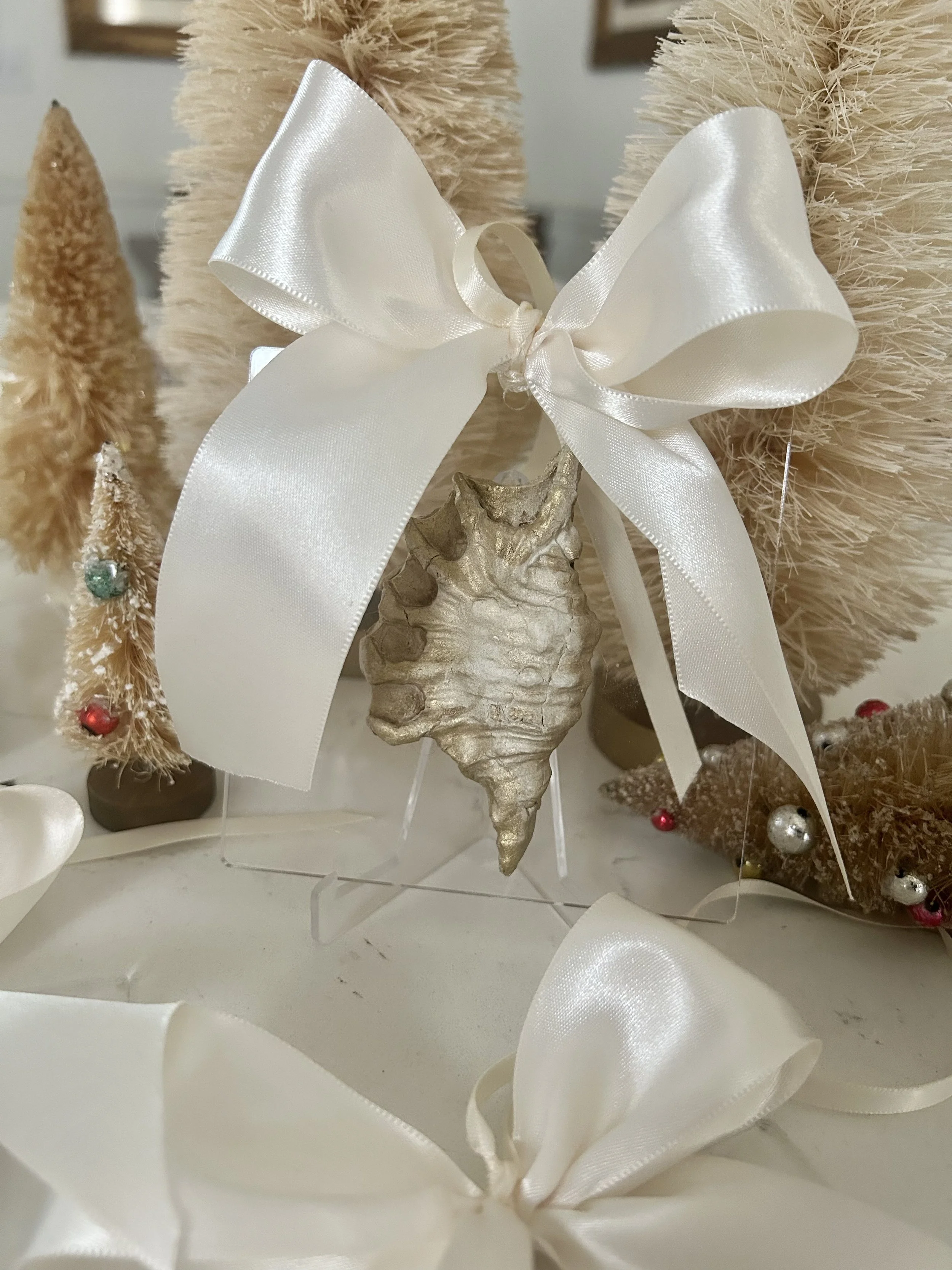 Beautiful Manger Intaglio with scalloped edge, mounted on a 4” acrylic plate and hung with white velvet ribbon. Wrapped in clear cellophane, ready to gift.